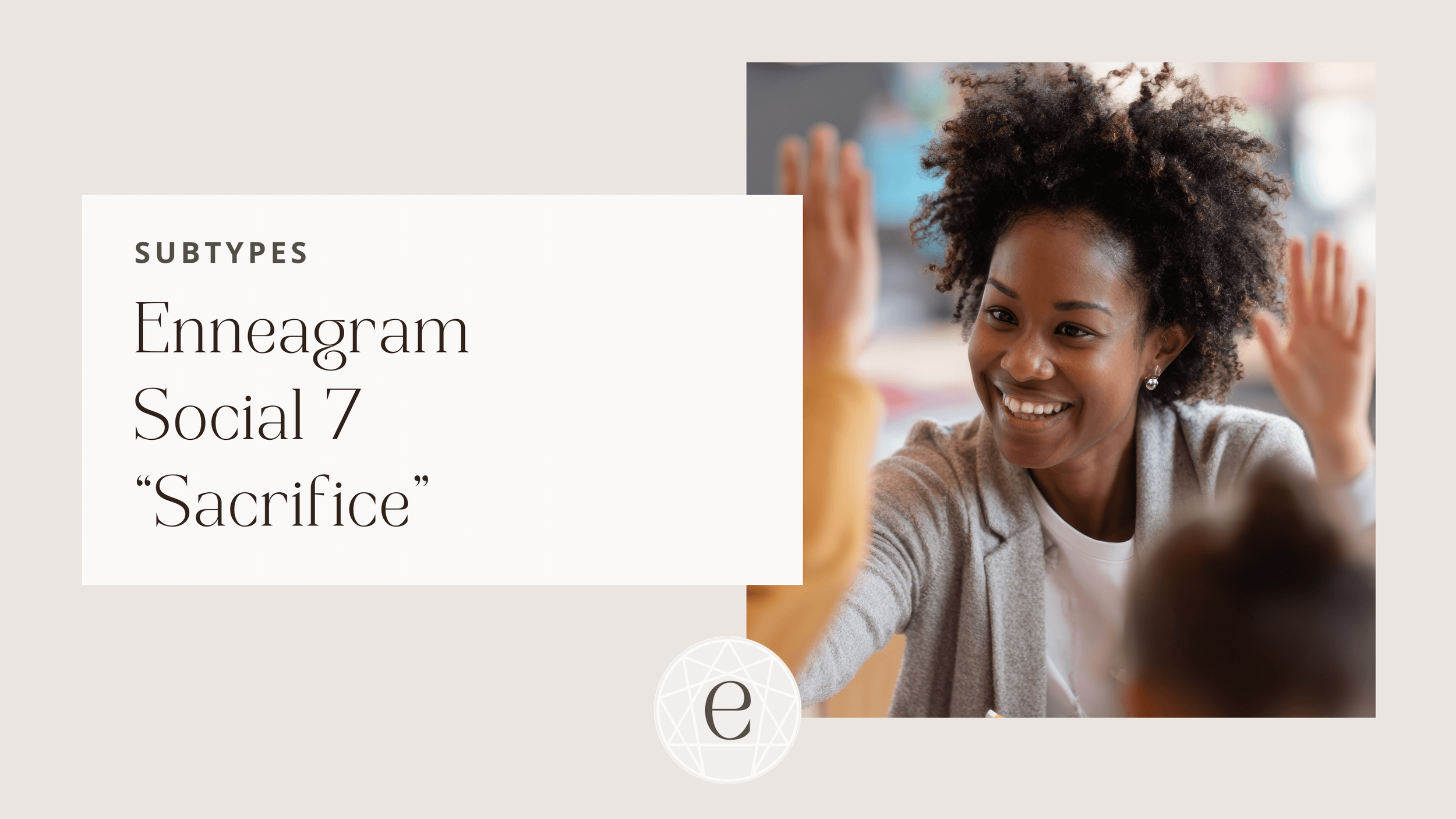 The Social Seven (SO7) has been nicknamed “Sacrifice,” a term used by Enneagram teacher Beatrice Chestnut in The Complete Enneagram, based on psychiatrist Claudio Naranjo’s work with subtypes. “Sacrifice” reflects the Social 7’s tendency to set aside personal pleasure for the good of the group, often appearing more duty-bound, idealistic, and serious than other Sevens.