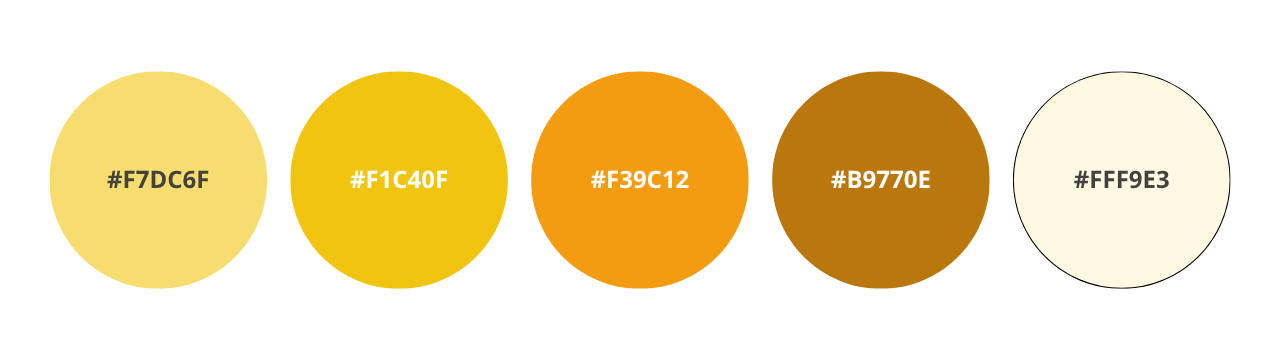#F7DC6F — Golden Glow; #F1C40F — Bright Gold; #F39C12 — Honey Amber; #B9770E — Bronze; #FFF9E3 — Cream Neutral