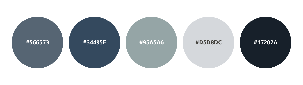 #566573 — Cool Charcoal; #34495E — Ink Blue; #95A5A6 — Soft Slate; #D5D8DC — Gentle Gray; #17202A — Deep Focus